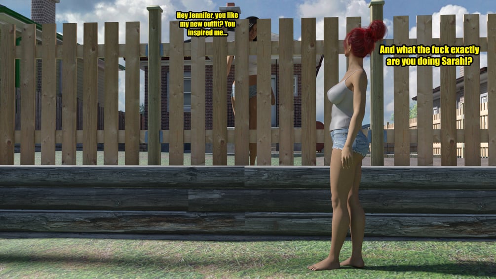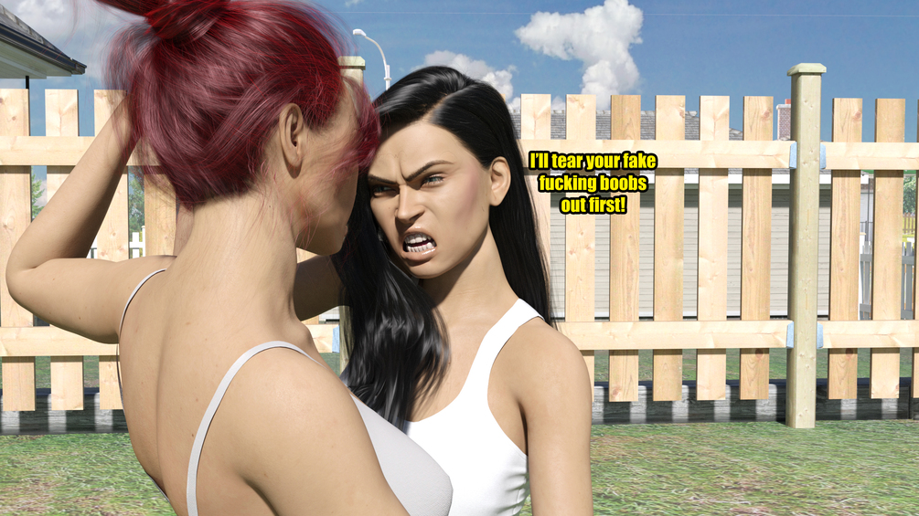 Sarah and Jennifer are neighbours that have never gotten along, constant arguing and almost coming to blows on a few occasions has had tension building between these two very different woman for a long time. After a brief encounter in the street Sarah decides to get back at Jennifer by wearing her usual slutty outfit, both ladies think it's about time they sort out their problems once and for all...